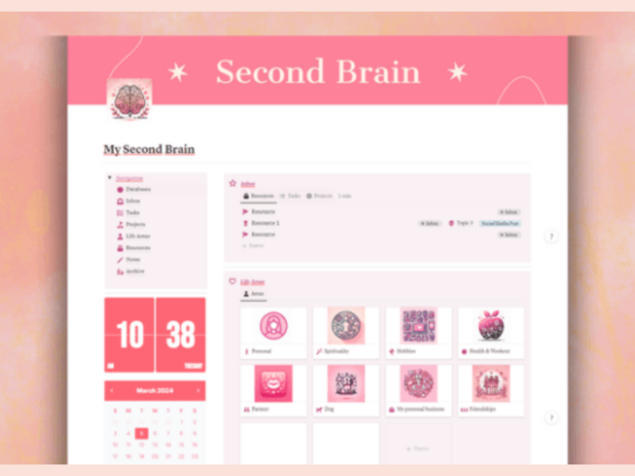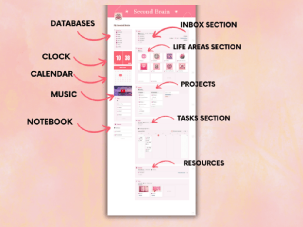 Download Your Template: Download the SECOND BRAIN template in the captivating Pink Aesthetic from the provided link.