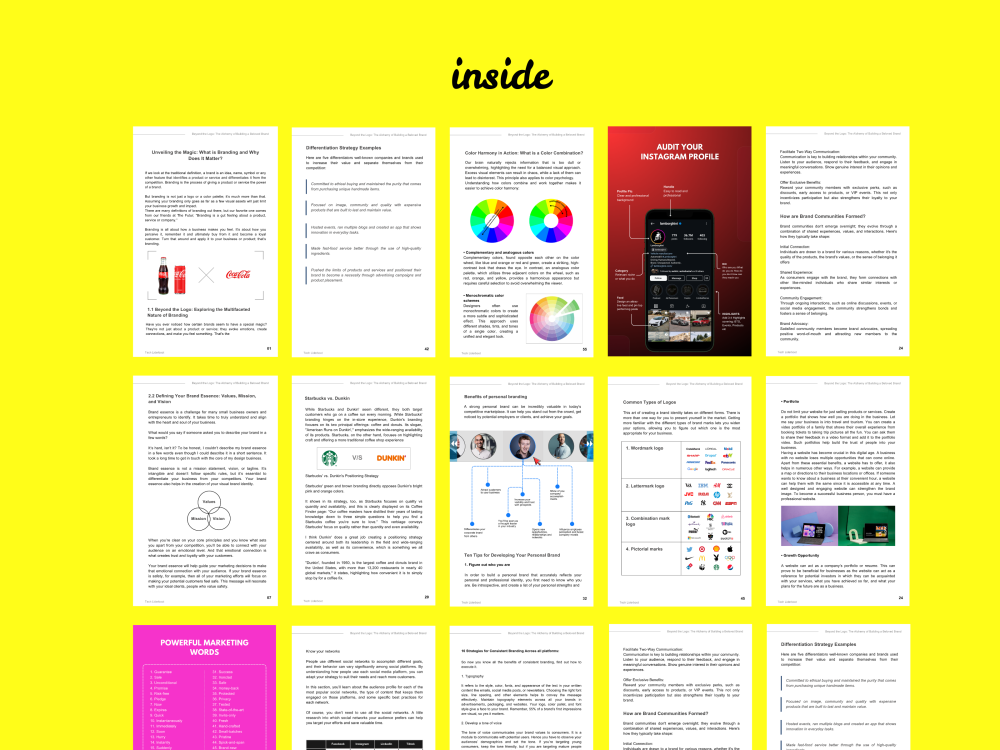 - Visual Deep Dive – Master logos, typography, icons, and color psychology to create instant recognition.