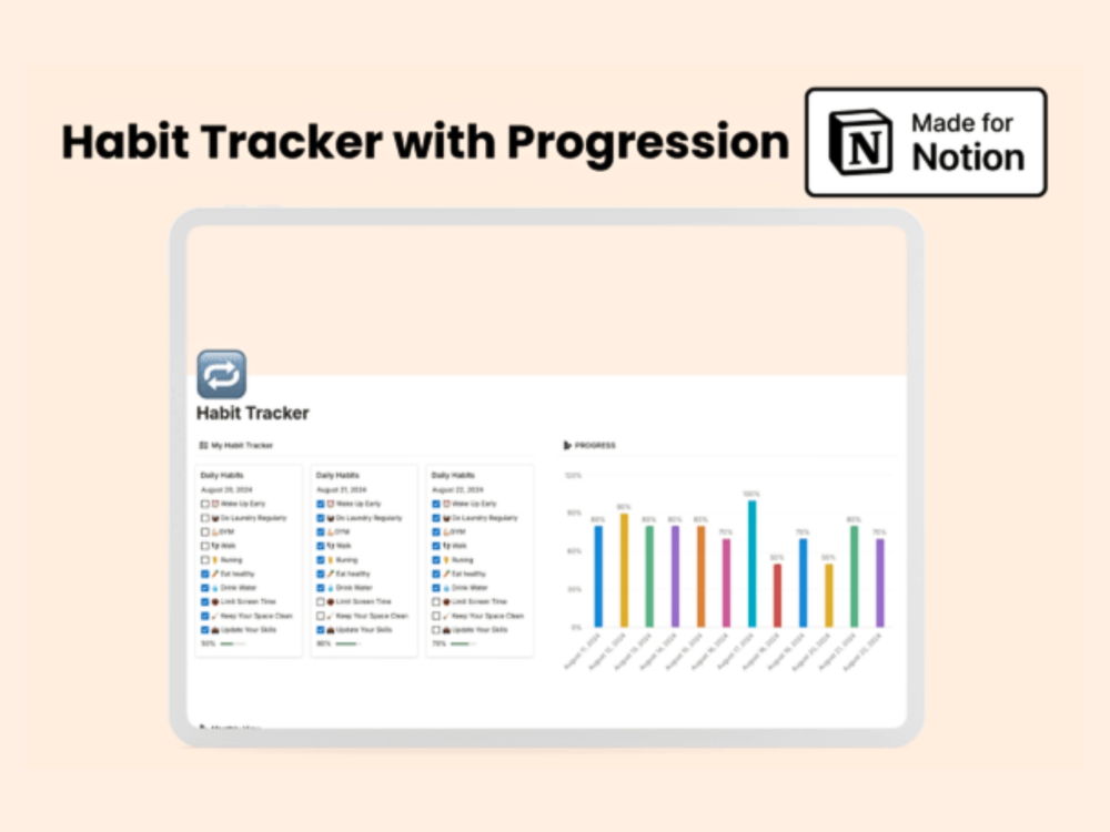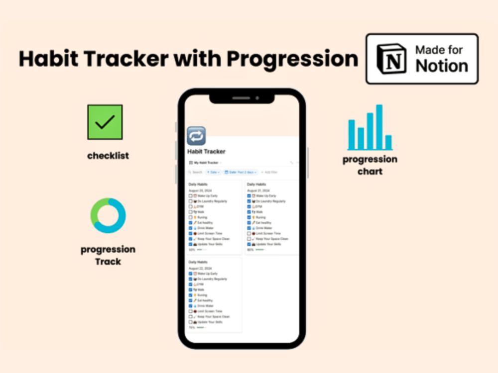 Whether you’re starting a new routine or looking to enhance an existing one, the Habit Tracker with Progression template is your perfect companion for personal growth. Start tracking, stay consistent, and see real progress in your habits!
