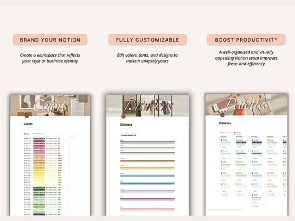 ✅ Color Palettes & Themes – Match your Notion pages to your brand aesthetic.