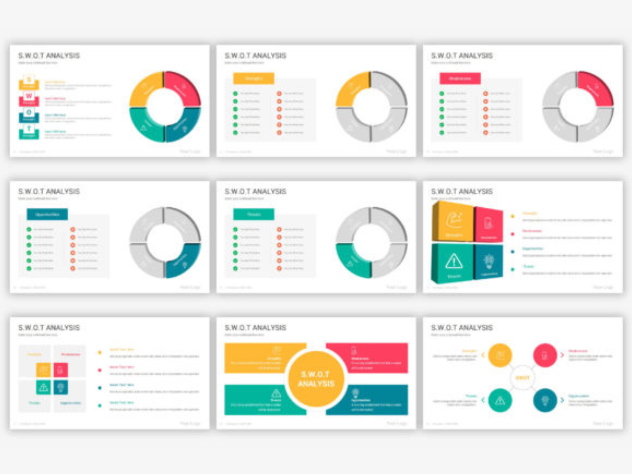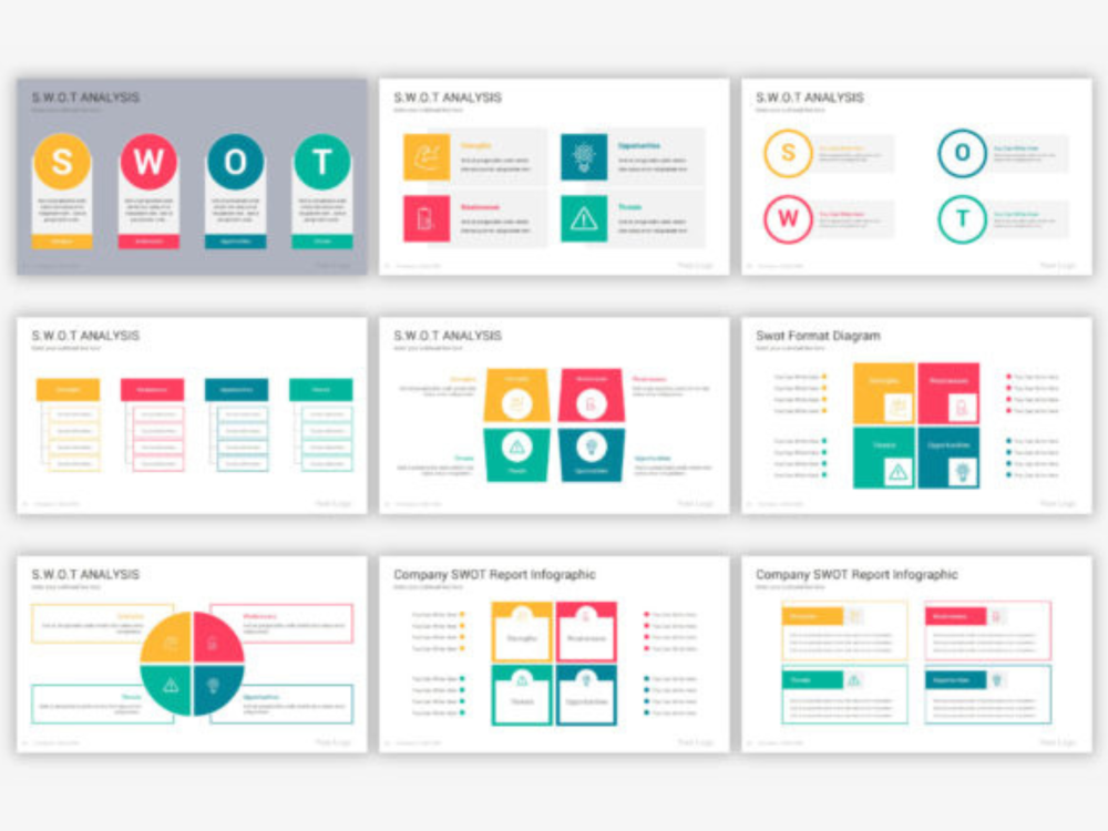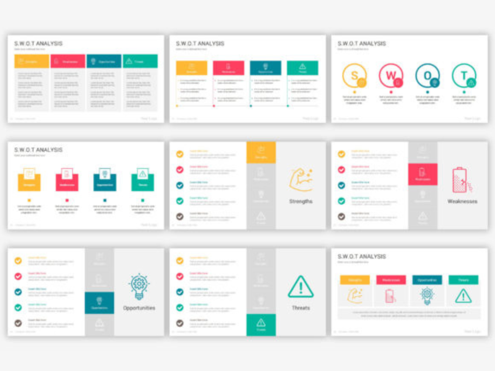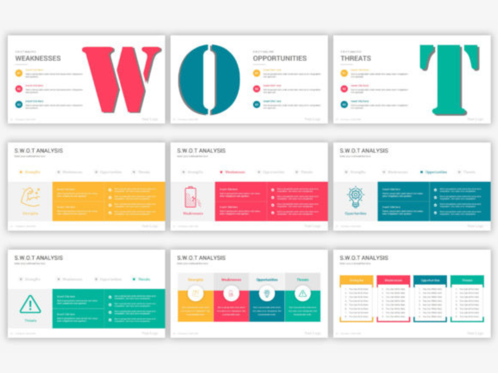 Big Collection of Modern Swot analysis diagrams slides to convert your data visually into an amazing presentation. With 70 fully editable slides, infographics, and diagrams. Over 6500 professional icons included. You can flawlessly move, resize or change colors throughout your presentation slides. Plue 90 color themes are included in this pack, which you just can with One Click change the colors of all shapes, Icons, fonts, and auto recolored. or you can make your own colors theme and apply it on all slides at once.